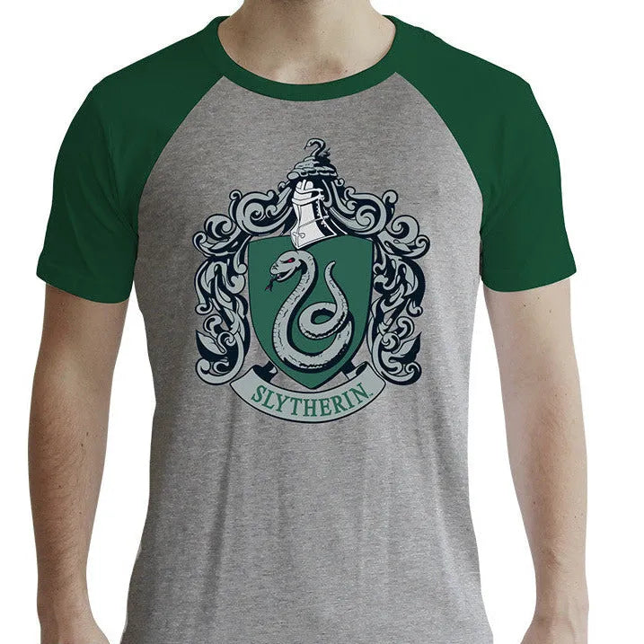 Not Slytherin hey? But here is a great t-shirt just for you! - Slim fit. Finely ribbed round neckline. Raglan sleeves. - High quality t-shirt: 150 g/m², 50% cotton, 50% polyester. - T-shirt for men. - Color: Grey and Green.