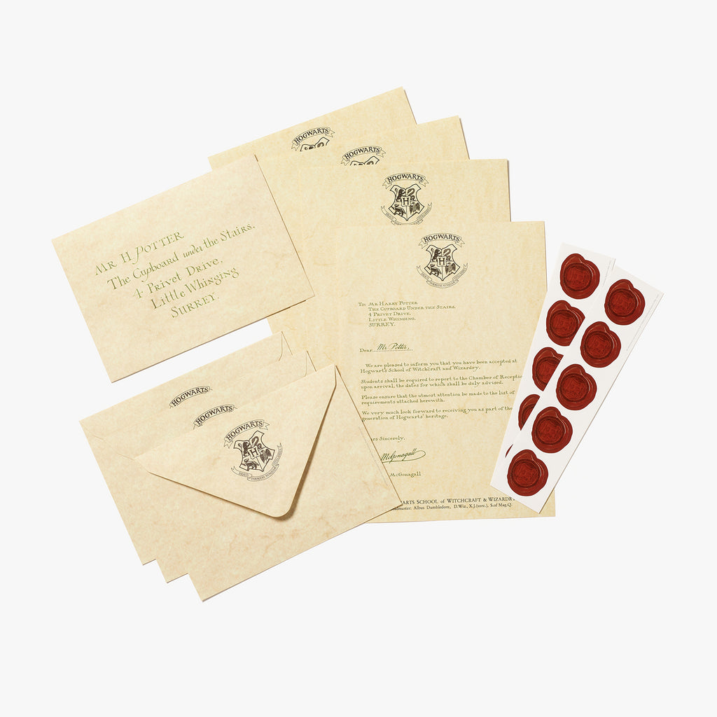 Send magical mail with our writing set featuring the Hogwarts Acceptance Letter. With writing paper, envelopes and stickers, this writing set is inspired by the iconic graphic props designed by MinaLima for the film ‘Harry Potter and the Philosopher’s Stone’.