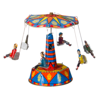 Carrousel in metal. Not suitable for children. Pull the handle to make it swirl around. 8.5 x 8.5 x 11 cm