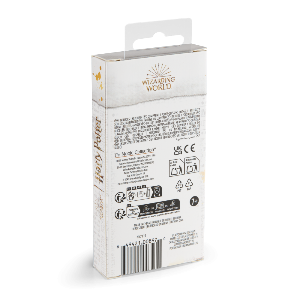A die cast metal keychain of the Platform 9¾ logo, finished with red enamel detailing. This circular golden keychain is perfect for carrying a piece of Harry Potter magic with you at all times.