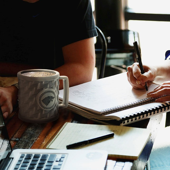 Impose your Giant Wolf emblem with this 3D Stark Mug! The iron throne is within your reach... - Size: 500ml. - Not suitable with microwave and dishwasher. - Material: dolomit. - Mug with embossed design.