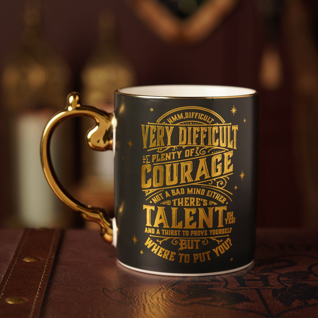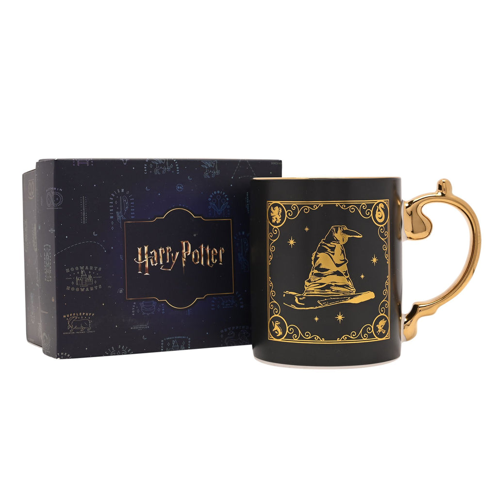 Made from black ceramic with a golden design of the iconic Sorting Hat under a starry sky, this mug blends enchanting artistry with practical use, creating a truly spellbinding piece. Each sip evokes memories of the Great Hall and connects fans to a beloved fantasy world.